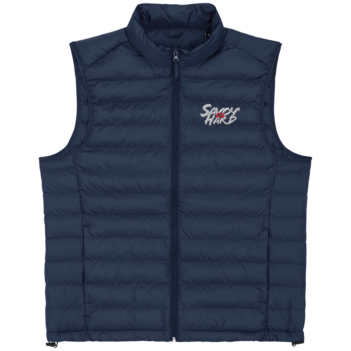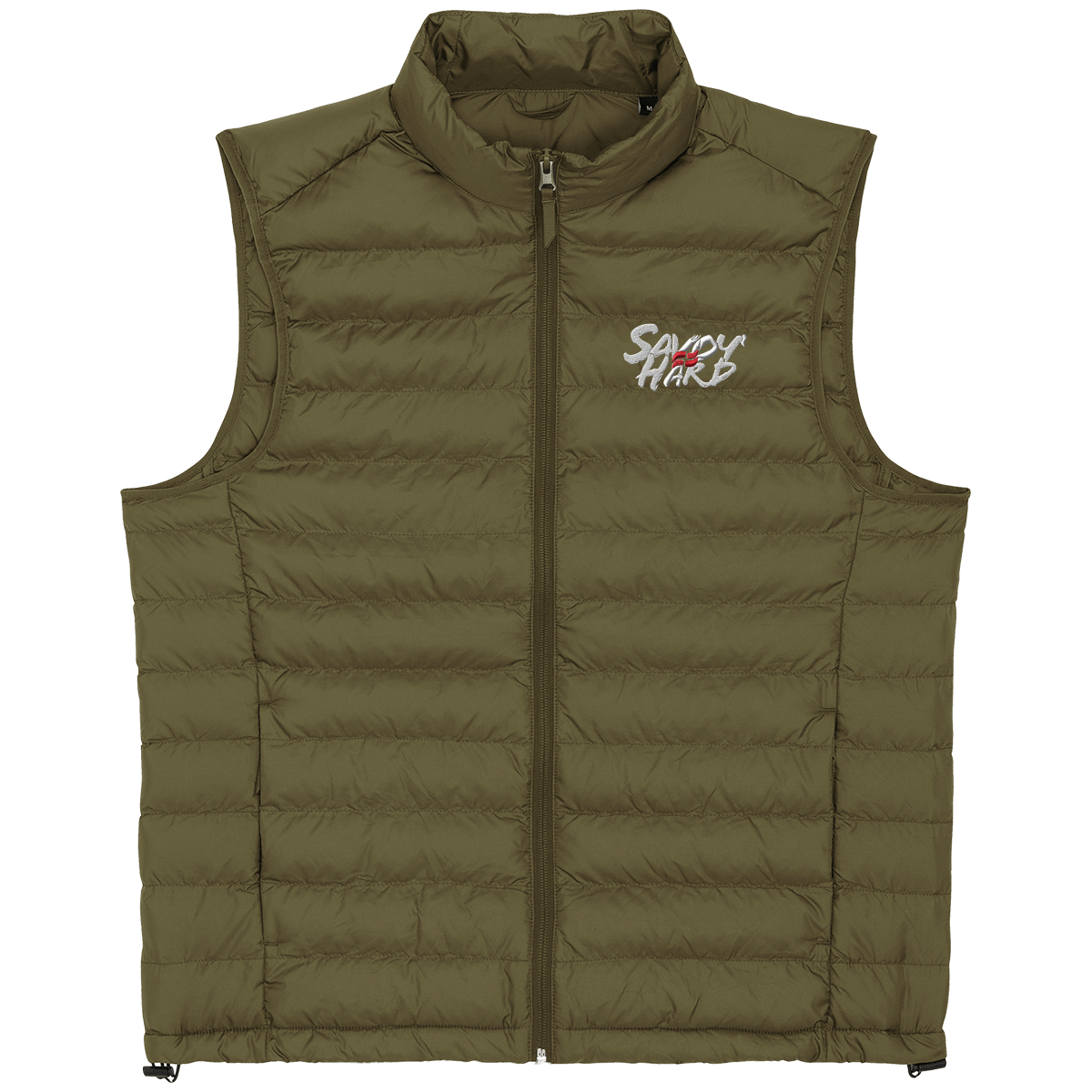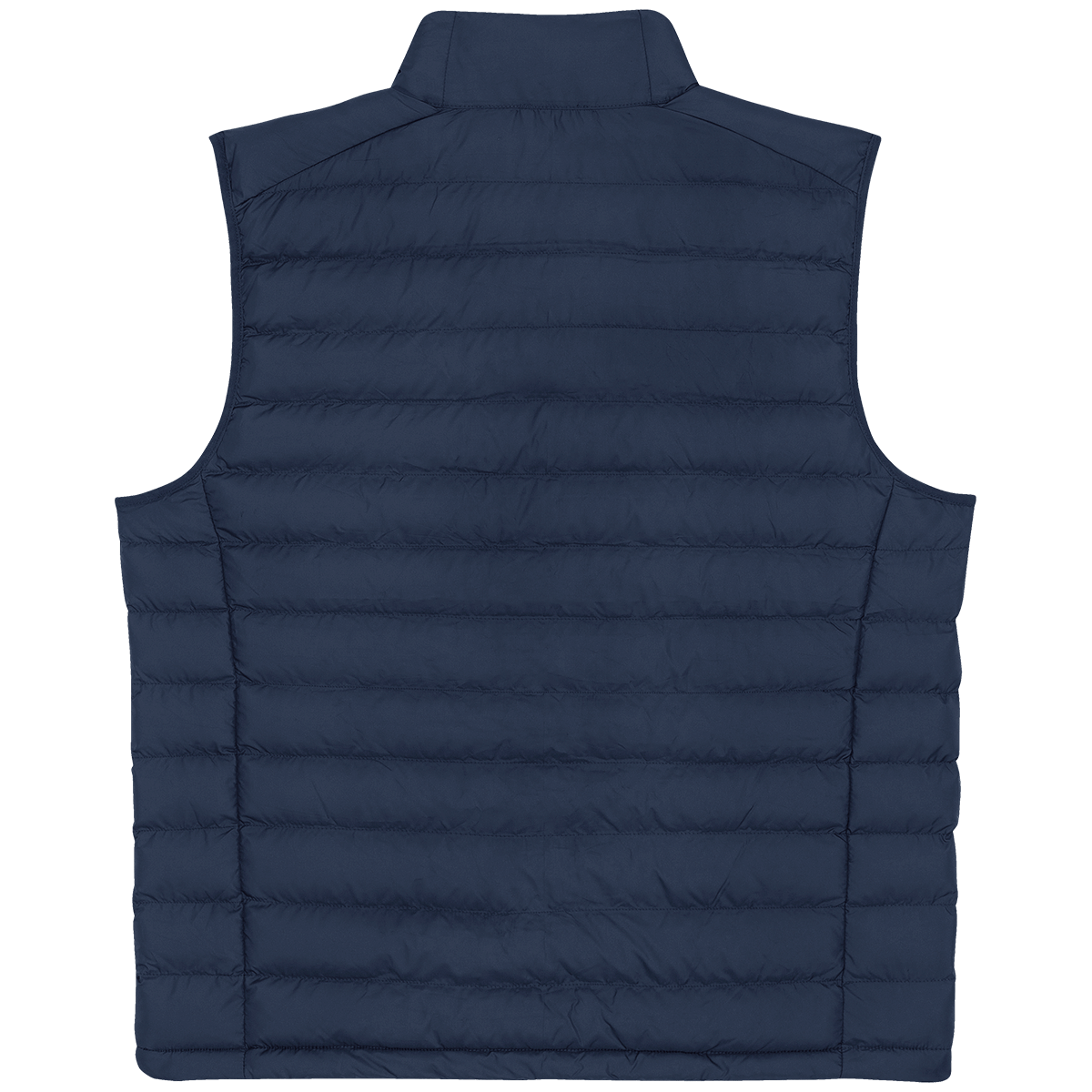 Sans manches. Col haut. Fermeture éclair inversée en nylon centrée à l’avant. Poches passepoilées à fermeture éclair avec tirette extra gros grain. Bord élastique à l’emmanchure. Entièrement matelassé. Empiècements côtés pour une meilleure coupe. Coutures intérieures finies avec bord. Bas du corps avec arrêt ajustable en plastique et cordon élastique.